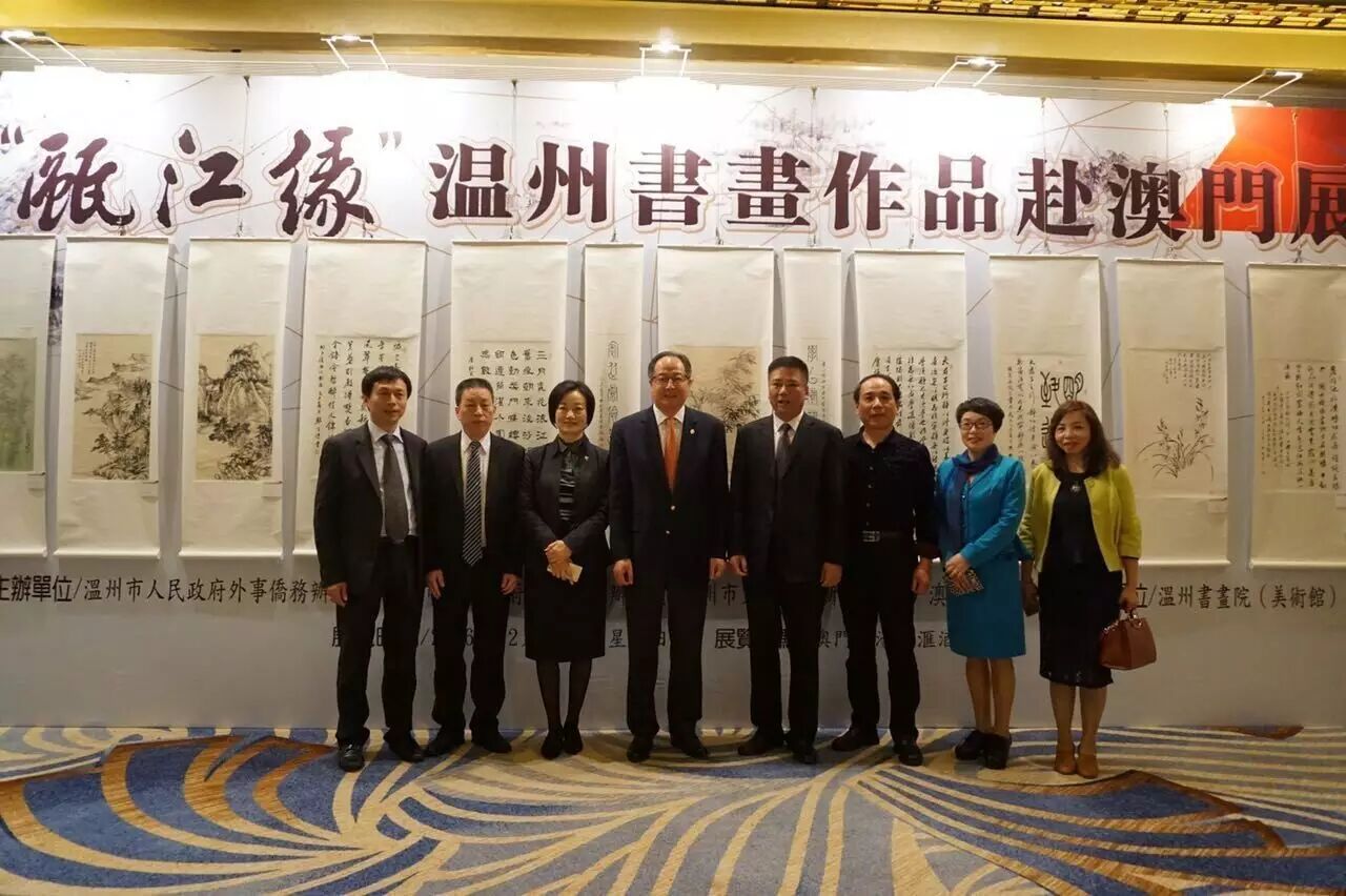 12月18日下午,“瓯江缘”温州书画作品赴澳门展在澳门新濠影汇展出,温州市人大常委会主任葛益平、温州市人民政府外事侨务办公室(港澳事务办公室)主任邱华萍、温州市委统战部副部长叶军、温州市人大民宗侨外工委副主任许瓯、澳门温州人商会会长林小冬等出席。本次展览共展出作品47件,作品在沿袭传统的基础上融合了当代特色的视觉语汇,书法作品秉“清正典雅”之风,真草篆隶行五体兼备;国画作品题材丰富,涵盖了山水、花鸟、人物等,工笔精妙、写意传神。展出期间,许多前来观展的同胞们驻足在作品前,细细观摩家乡的艺术,谈论着自己熟悉的艺术家,在异乡找到了归属感。12月21日,展览圆满结束,有关人员凯旋归来。