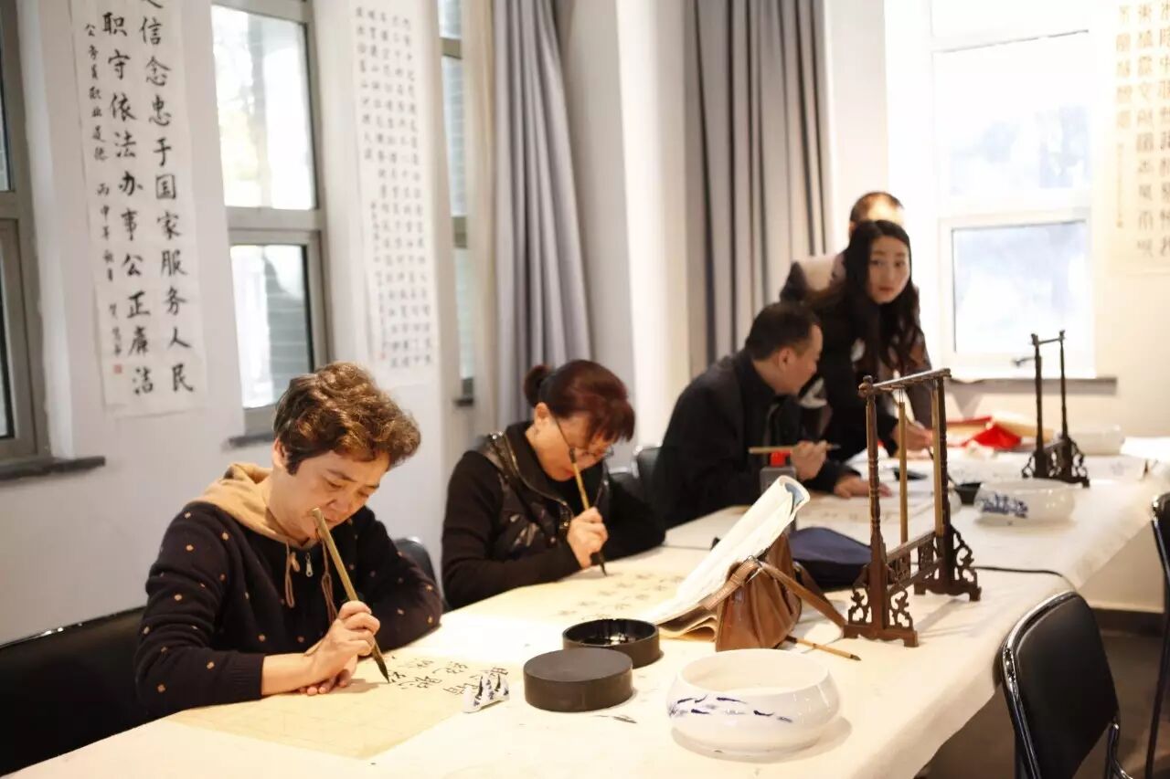 在温州书画院展览策划部副主任、文化驿站的具体负责人胡三元和临书吧书法教师李倩的带领下,学员首先观摩了展出的作品,随后进行了座谈会。在座谈会上,陈默副院长肯定了学员的成绩,也提出了一些建议,他说:“一年来大家进步显著,成绩有目共睹。但是同时也发现个别学员急于求成,没有认真打好基本功。希望大家以后认真临习经典名帖,厚积薄发,学有所成。”会上,大家各抒己见,为临书吧提出了许多有益的建议,并一致肯定了温州书画院的工作,纷纷表示:“十分感谢温州市人民政府、温州市文化广电新闻出版局和温州书画院的付出。”
